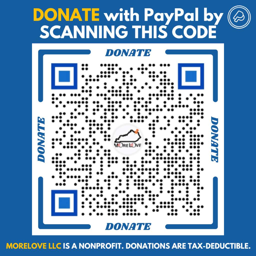 If you’d like your donation to support a specific program or initiative, please note it exclusively in the memo line, or contact us at MoreLoveEKY@gmail.com to discuss your donation.