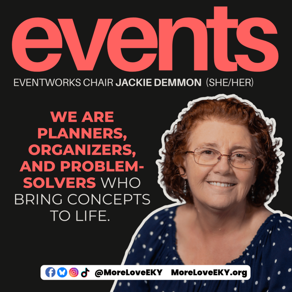 Connect with Jackie by emailing MoreLoveEKY@gmail.com