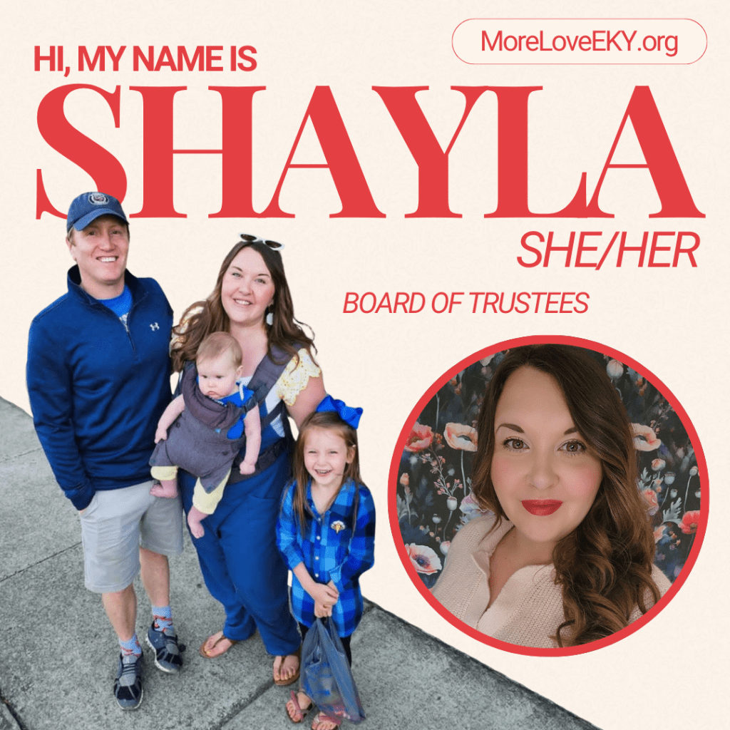 Connect with Shayla by emailing MoreLoveEKY@gmail.com